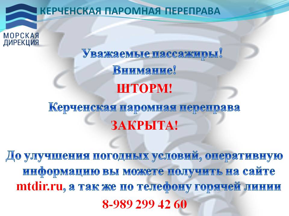 Как сообщается на официальном сайте Керченской переправы, в результате непогоды ее работа приостановлена на неопределенный срок. А точнее – до улучшения погодных условий.