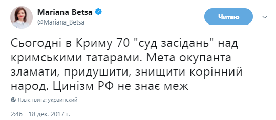 В украинском МИД также почеркнули, что целью сегодняшних «судов» является «сломать, придушить и уничтожить коренной народ».