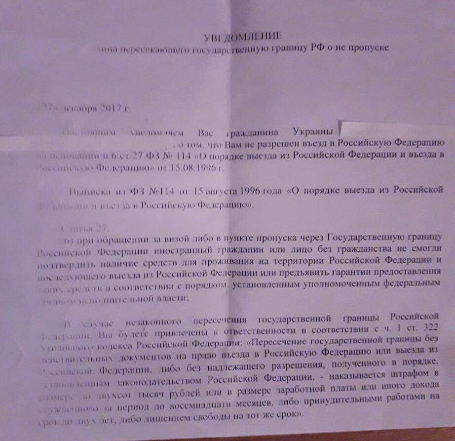 На «границе» таксистам выдали «документ», где сказано, что им отказано в разрешении на въезд в Крым. Российские пограничники объяснили, что запрет на въезд водители получили якобы из-за недостатка средств для пребывания в Крыму. Таксисты были вынуждены высадить своих пассажиров.