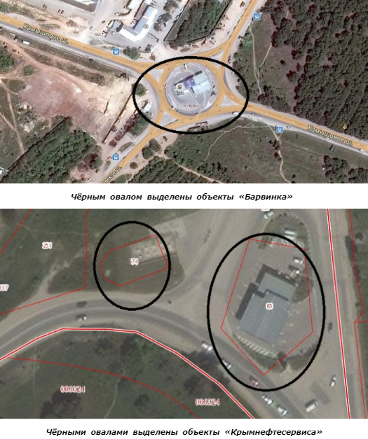 Речь идет об объектах, расположенных на Камышовском шоссе. Они принадлежали фирмам «Барвинок» и «Крымнефтесервис» соответственно (связаны с группой компаний–нефтетрейдеров ATAN).