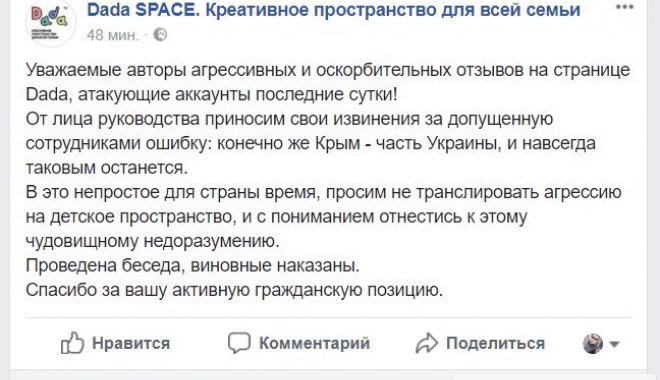 На вопрос в комментариях, почему на занятиях использовалась карта Украины без Крыма, администратор страницы ответил, что дети получают информацию об окружающем мире в режиме реального времени, где «Крым является территорией Российской Федерации».
