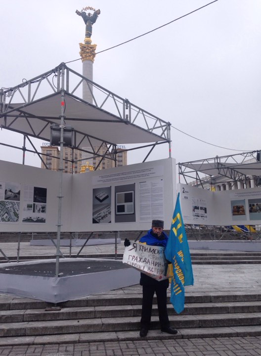 В четверг, 22 февраля, крымский татарин Сервер Караметов вышел на одиночный пикет на Майдане Незалежности в Киеве.