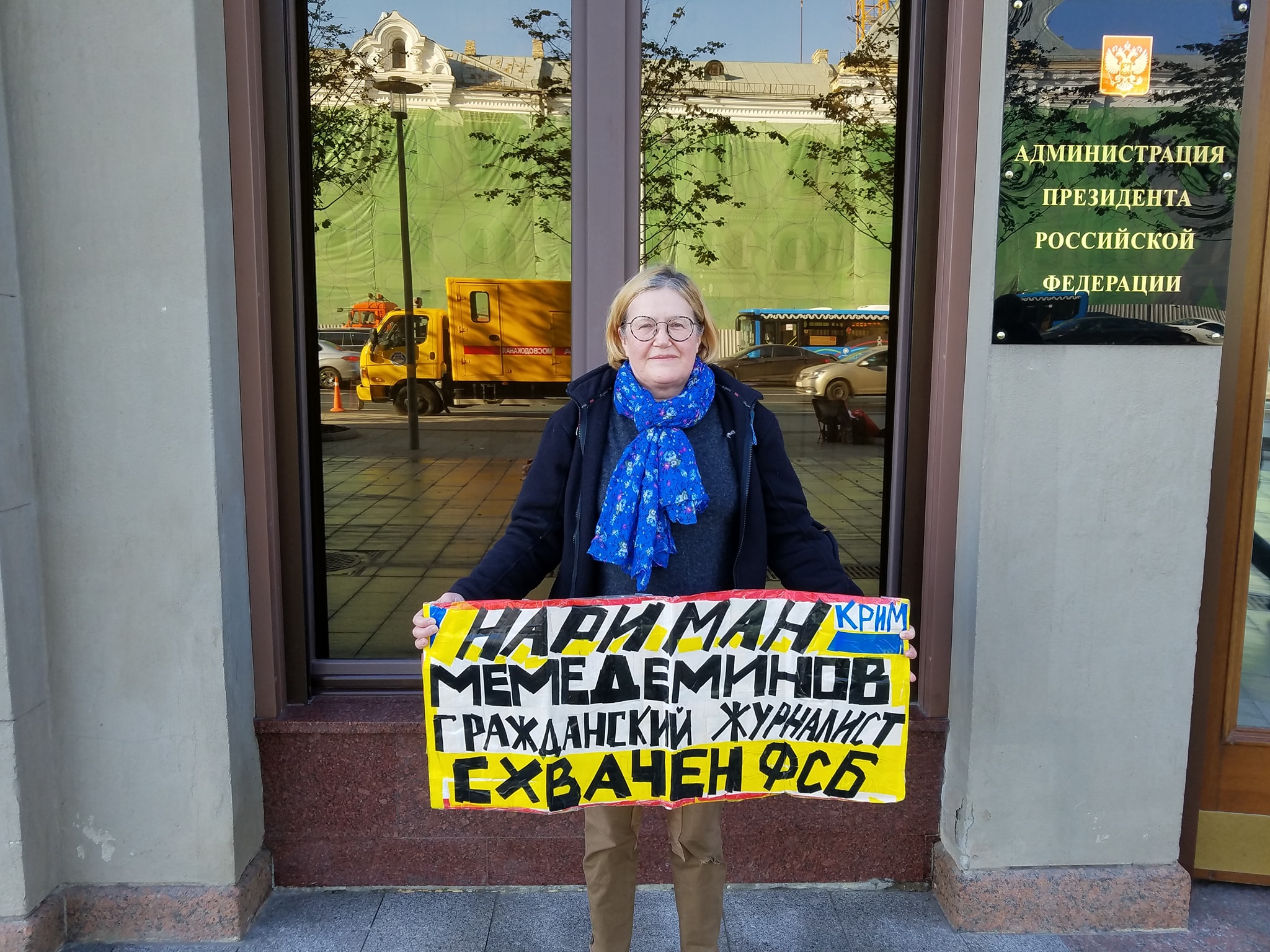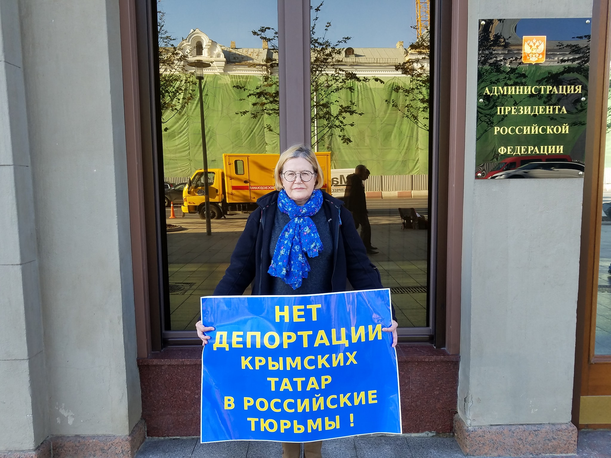 У Администрации президента РФ прошел одиночный пикет против притеснения крымских татар в Крыму.