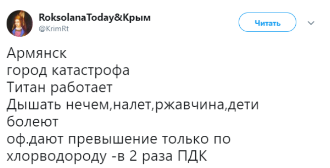 «Армянск — город катастрофа. «Титан» работает. Дышать нечем, налет, ржавчина, дети болеют», — написал блогер.