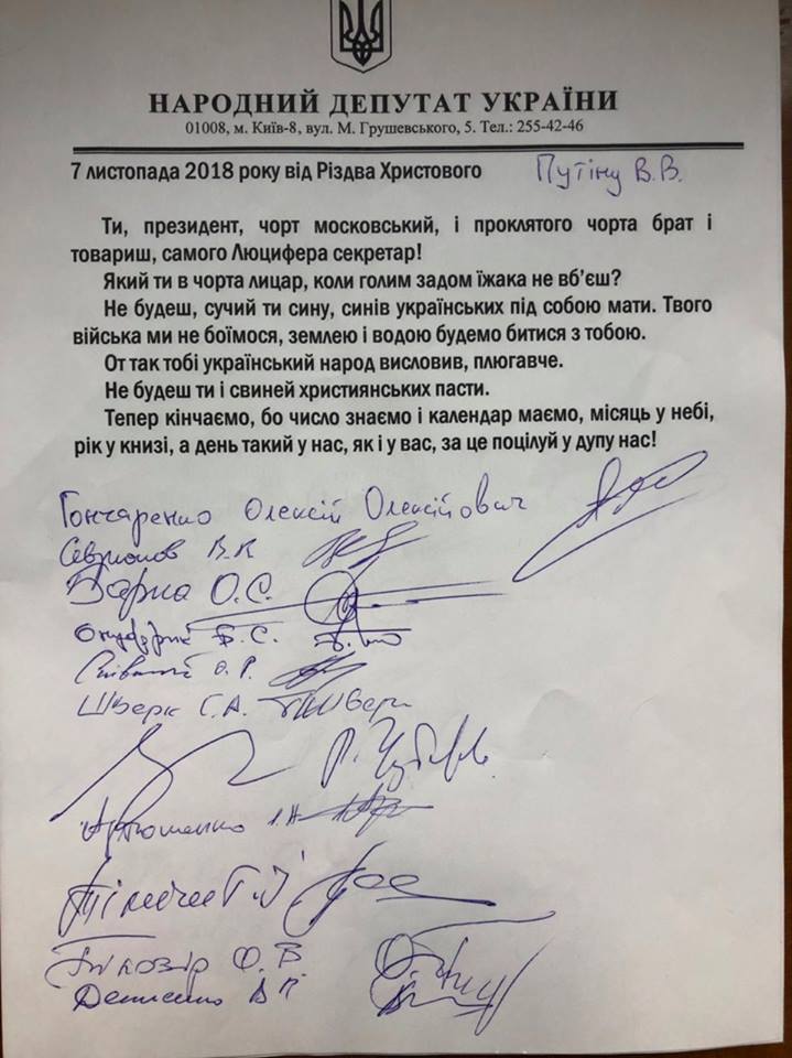 «Ты черт московский»: нардепы написали письмо Путину в ответ на санкции