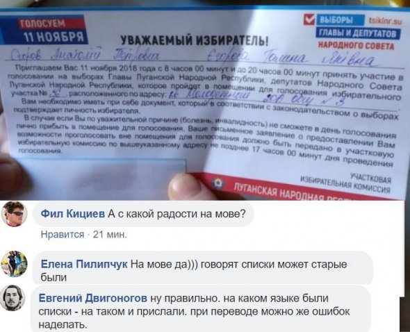 Напомним, ранее в «ЛНР» людям прислали приглашение на «выборы», где обращение к «избирателям» написано на украинском языке.