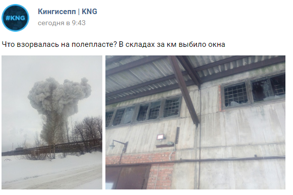 В России на заводе «Полипласт» в Кингисеппском районе Ленинградской области произошел взрыв, ранены три человека.