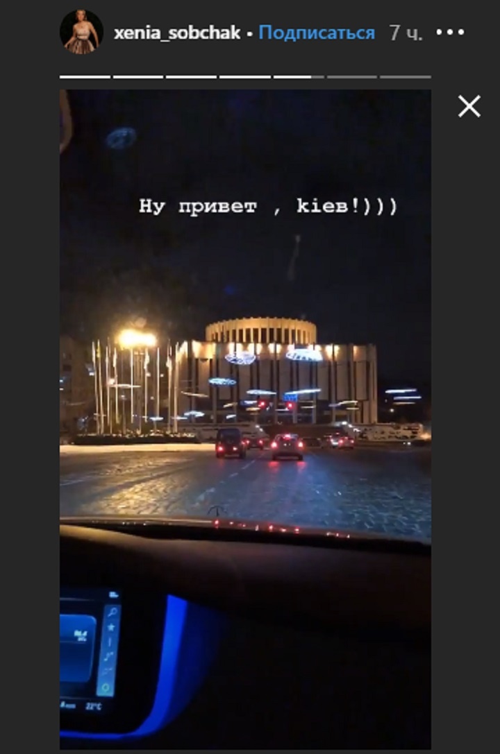 «Ну привет, Киев», — подписала видео с поездкой по направлению к Европейской площади в столице Ксения Собчак.