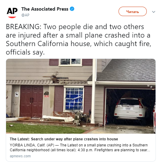 В результате два человека погибли и двое получили ранения. Были ли погибшие на борту самолета, или они пострадали от падения самолета на земле, неизвестно.