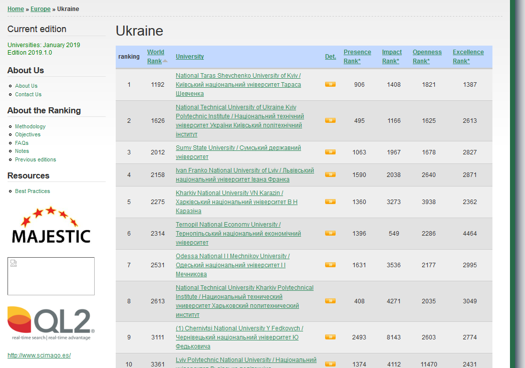 323 украинских вуза вошли в мировой рейтинг Webometrics
