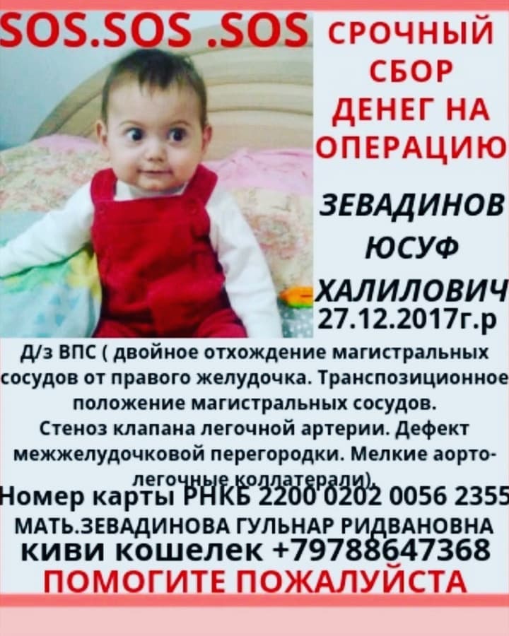 Годовалый Юсуф Зевадинов с пороком сердца нуждается в срочной операции. Семья остро нуждается в финансовой поддержке.