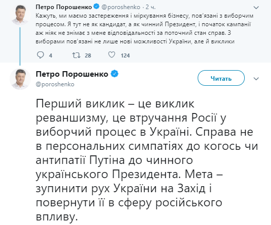 Порошенко также подчеркнул, что Россия преследует цель остановить движение Украины на Запад и вернуть ее в сферу своего влияния.