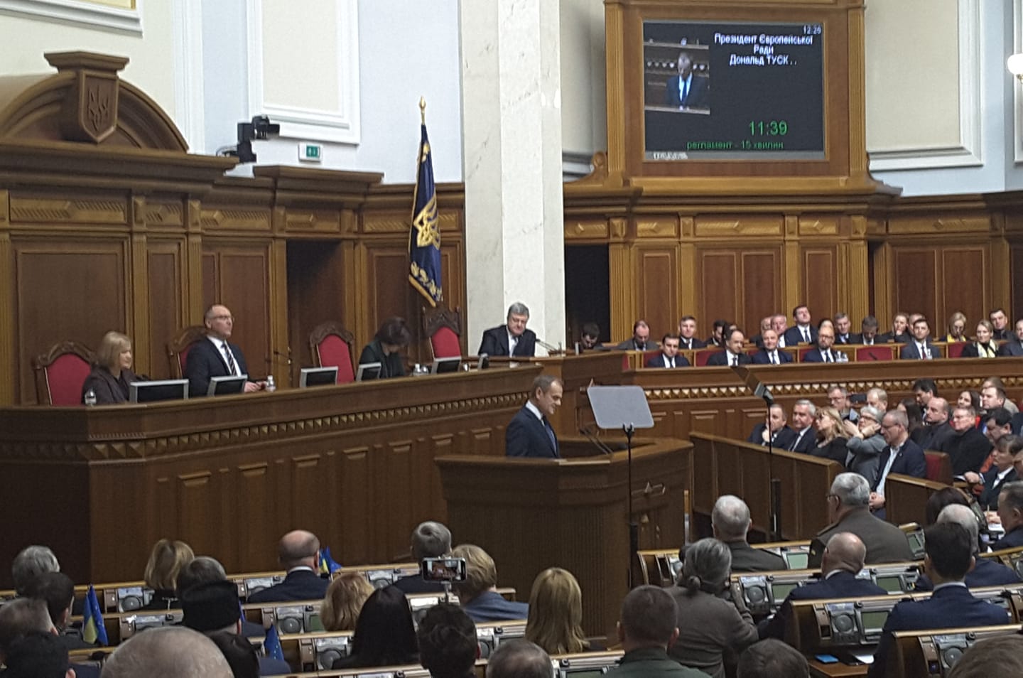 Президент Европейского Совета Дональд Туск выступил на специальном заседании Верховной Рады, посвященном пятой годовщине начала российской агрессии против Украины.
