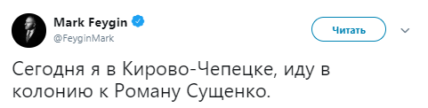 «Сегодня я в Кирово-Чепецке, иду в колонию к Роману Сущенко», — сообщил защитник.