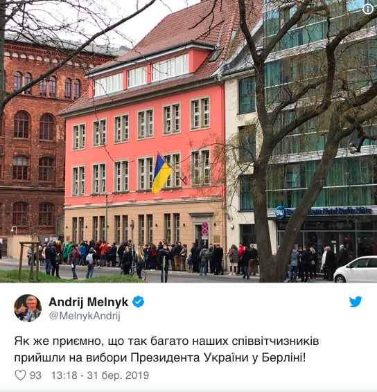 Большая очередь образовалась и в Берлине, сообщил посол Украины в Германии Андрей Мельник.