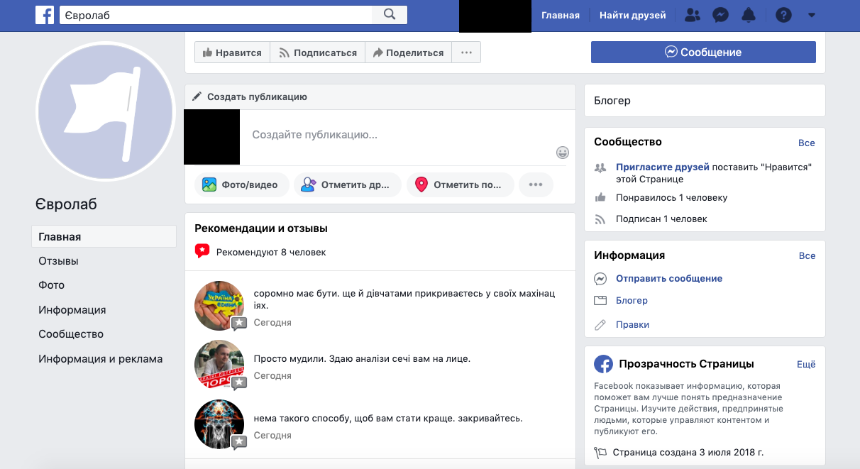 По информации сотрудницы Eurolab, их страницу заблокировали «в связи с активностью», передает «Украинская правда».