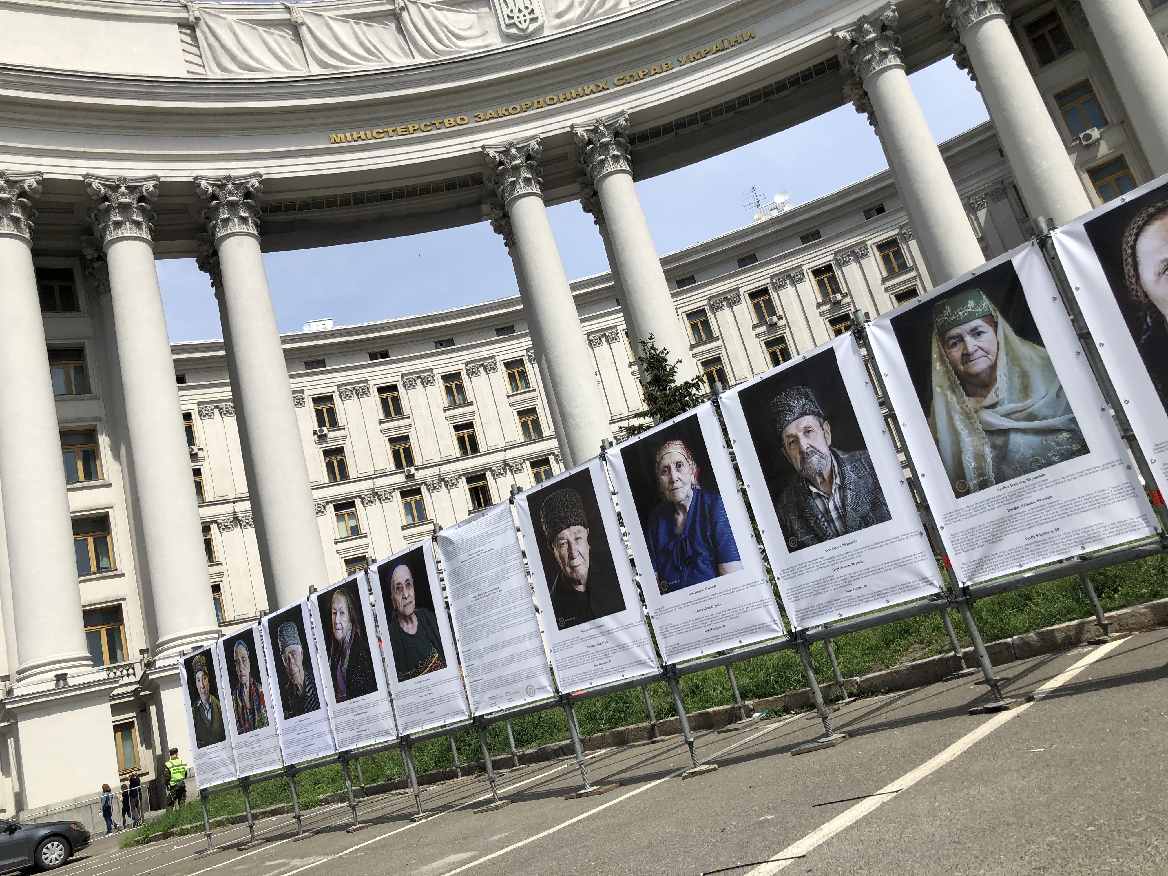 На Михайловской площади, возле здания Министерства иностранных дел Украины, проходит фотовыставка «75 лет подряд. Трагедия крымских татар». На этих фото изображены крымские татары, которые пережили депортацию 1944 года. Всего на Михайловской площади находятся около двух тысяч человек.