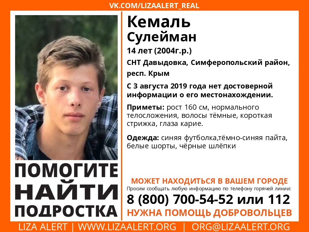В оккупированном Крыму сообщают об исчезновении крымского татарина, 14-летнего жителя поселка Давыдовка Симферопольского района Сулеймана Кемаля.