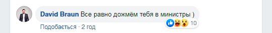 «Все равно дожмем тебя в министры», — написал в комментариях к сообщению Радуцкого Давид Арахамия.