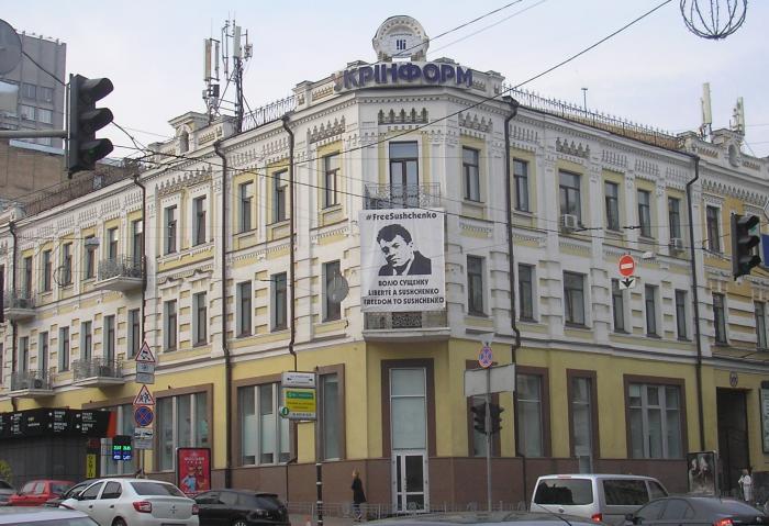 Сообщается, что перед этим журналист собственноручно снимет плакат с надписью #СВОБОДУСУЩЕНКО, который почти три года висел на фасаде здания информагентства.