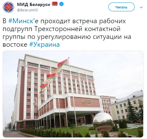«В Минске проходит встреча рабочих подгрупп Трехсторонней контактной группы по урегулированию ситуации на востоке Украины», — говорится в сообщении.