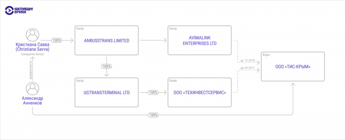 Отмечается, что компании до сих пор работают на Керченской переправе. Согласно данным проведенного расследования, они входят в крупную транспортную группу «АнРуссТранс». Значительную часть техники и военных во время аннексии Крыма Россией в 2014 году перебрасывали на полуостров из РФ паромами транспортной группы «АнРуссТранс». Ее конечные бенефициары — бывший замминистра путей сообщения России Александр Анненков и его семья.