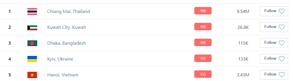 Об этом говорится на сайте мирового рейтинга по индексу качества воздуха QIAir.