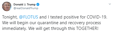 Про це президент США особисто повідомив у Twitter 2 жовтня.